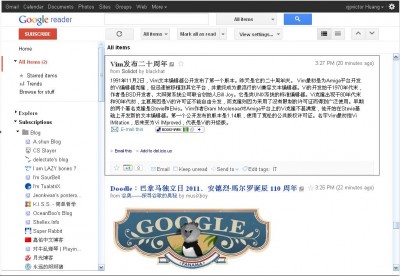 对于Google Reader的新UI我都懒的吐槽了,反正现在Google的服务在小上网本上全线扒窝,能有一半的屏幕用来显示内容就不错了,剩下一片白,亮瞎我的狗眼。